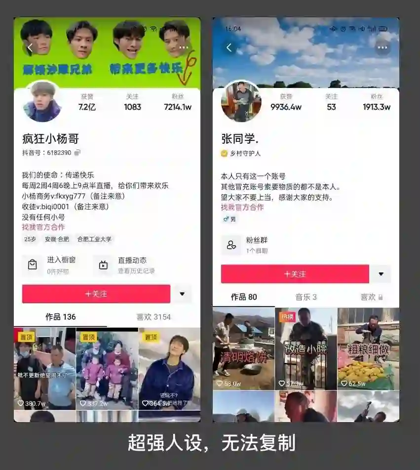 而这将难以甚至无法复制,比如张同学、小杨哥等等。
