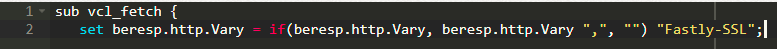 这就是我们为什么遇到无限的重定向。 为了解决这个问题,我们关闭了301s,清除了Fastly缓存,并进行了调查。 在通过哈希更改修复它之后,我们与Fastly技术支持一起想办法,最终建议将Fastly-SSL添加到不同的变体,如下所示: