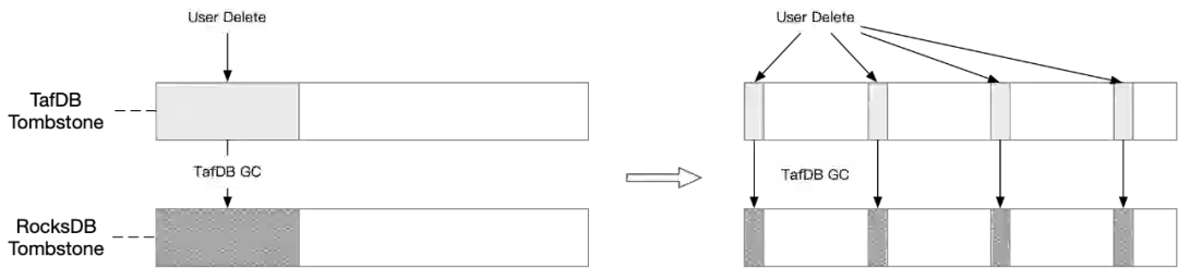为了解决这个问题,即缩短连续垃圾数据区的长度。我们将数据删除的压力分散开,将垃圾数据区拆成多个小片;同时增强单点处理垃圾数据的能力,缓解其对范围查询的性能影响。