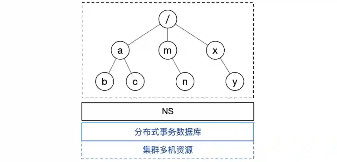 层级 Namespace 主要是维护文件系统的文件属性、目录树结构等元数据信息,同时支持目录树及文件操作,如:文件 / 目录创建、查找(Lookup/Getattr)删除及重命名(Rename)等。