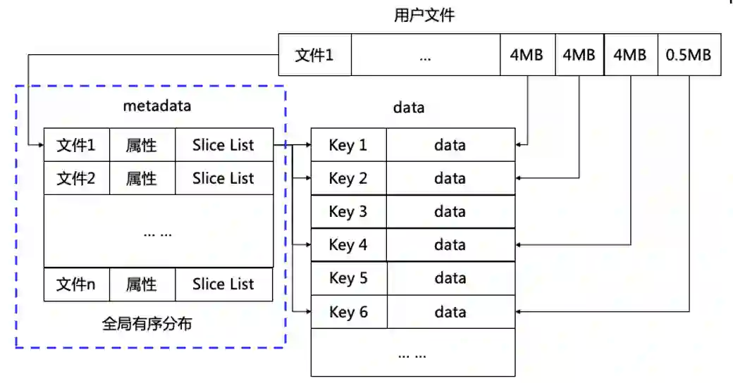 云存储系统一般由数据面和元数据面构成,其中数据面用于存储用户数据,元数据面用于存储数据对应的 meta 信息。用户数据量和访问量的增加会导致元数据面存储的条目数和 QPS 增加,元数据面的扩展性会直接影响到整个存储系统的扩展性。