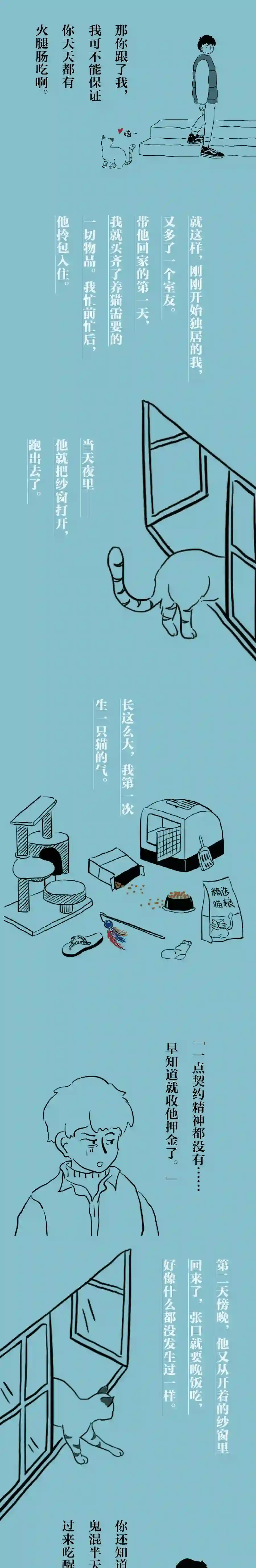 我们的相处模式就像颇有默契的室友:我负责他的食盆永远充沛,猫砂永远干净,而他则帮我消灭家中的一切害虫。