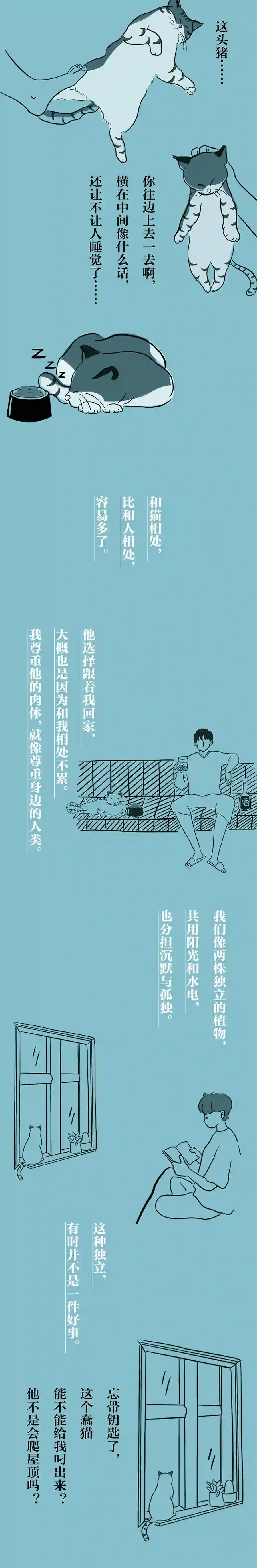 他不像一些猫那样粘人,会在人身上踩奶,或是在清晨的时候舔人的脸。他不太亲近人,沉默寡言,宁愿对着窗外发呆也不肯陪我玩,我感觉他有点社恐——和我一样。