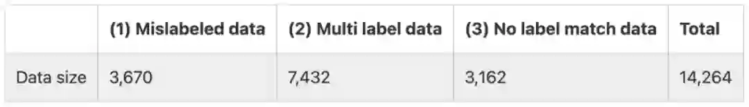 总结来看,错误数据大约有 14000 多个,考虑评估数据的数量为 50000,可以看出错误数据占比极高。下图是一些有代表性的错误数据。
