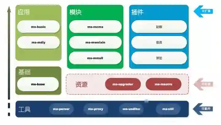 项目简介:完整开源,Java 快速开发平台。基于 Spring、SpringMVC、Mybatis 架构,MStore 提供更多好用的插件与模板(文章、商城、微信、论坛、会员、评论、支付、积分、工作流、任务调度等,同时提供上百套免费模板任意选择),价值源自分享!铭飞系统不仅一套简单好用的开源系统、更是一整套优质的开源生态内容体系。