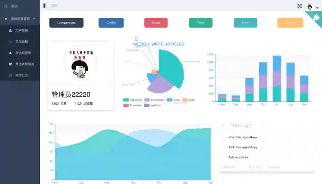 项目简介:以 SpringBoot 为中心,模块化开发系统,用户可以随意删减除权限框架外 任意的系统模块。复用,组装性强主要应用技术: