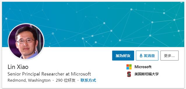 最终,今年的这一奖项授予 NIPS 2009 论文《Dual Averaging Method for Regularized Stochastic Learning and Online Optimization》及其作者,微软首席研究员 Lin Xiao。Lin Xiao 曾就读于北京航空航天大学和斯坦福大学,自 2006 年起就职于微软研究院。