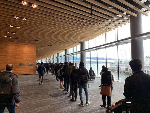根据机器之心记者在现场看到的情况,今年的大会确实盛况空前:在主办场地温哥华会展中心,参会领取入场卡的人群早早地从 B1 楼排到了二楼。