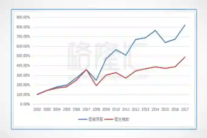图:按照复利计算“恒指狗股”和恒生指数(含派息)回报对比,来源:彭博社,云锋金融整理(2017年7月27日)