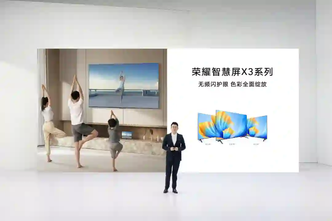 全新荣耀智慧屏 X3 系列,全系通过德国莱茵护眼认证,支持 DC 调光无频闪。画面和音质全面升级,采用 10.7 亿色、高达93% DCI-P3 广色域屏幕,以及钕铁硼扬声器。贴心儿童模式,专属儿童资源,可管控使用时长,避免孩子过度用眼;切换长辈模式,更大的字体和更清晰的界面,让老人操作简洁易懂。另外,荣耀智慧屏X3 系列承诺后续仍然会坚持开关机无广告。