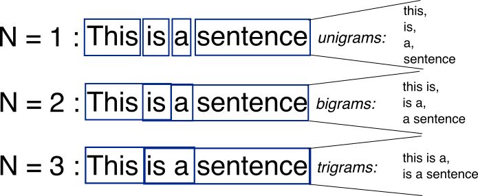 如图所示,ngram 是将可在源文本中找到的长度为 n 的相邻词的所有组合。