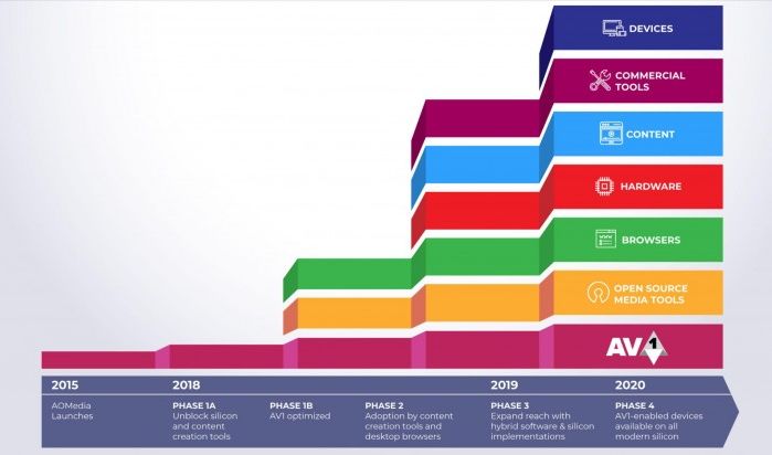 独立测试显示,AV1 编码的 4K UHD 视频压缩率比竞争的编码器平均高出 30%。编码器包含了大量的专利,专利持有者们都同意免除专利授权费用。AV1 包括了 Bitstream 规格,未优化的实验性软件编解码器,产品验证的参考流,允许内容创作和流工具的具有约束力的规范。