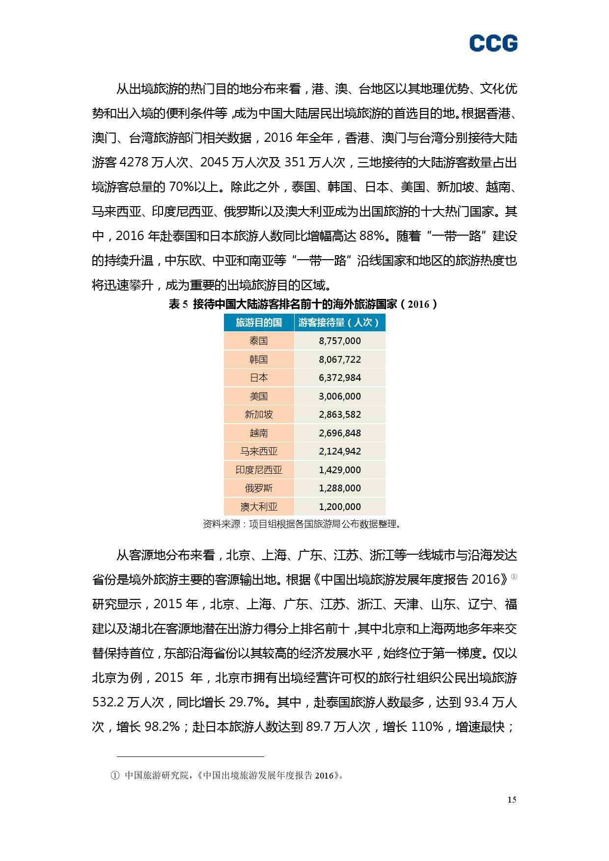 根据全球化智库(CCG)与携程旅行网(Ctrip)联合发布的《从出入境旅游看中国全球化发展》系列报告一,随着国民经济的增长和居民生活水平的提升,中国游客在旅游目的地选择上更趋国际化,中国游客也因人口基数大、消费力强而成为世界各国争抢的“香饽饽”。2015年,中国大陆出境游客为1.28亿人次,近乎于日本总人口数,同比增长9.4%,较2005年增长312.9%。虽然2015年增长幅度与2009-2014年间20%左右的增长幅度相比有明显放缓,但就总体而言,中国大陆出境旅游市场仍保持增长态势。根据UNWTO数据,2015年全球已登记国际旅客人数达11.9亿人次,中国大陆旅客占比超过10%,稳坐世界旅游大国位置。2017年初,习近平主席在达沃斯论坛上的讲话里提到,预计未来5年中国出境旅游将达到7亿人次。出境旅游人数将达到历史新高。