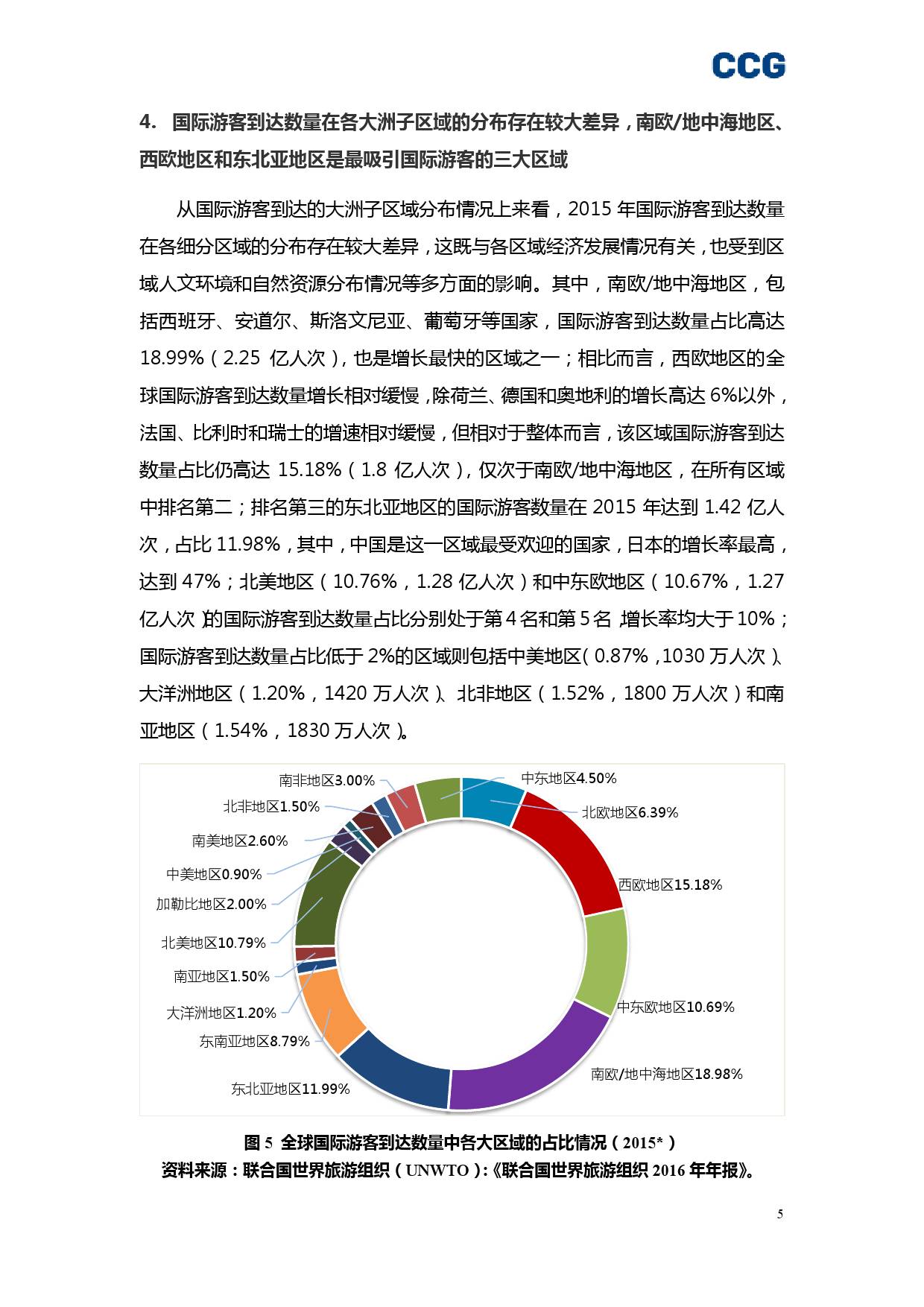 新兴经济体国际游客到达数量和比例获得同步增长,全球金融危机过后,新兴经济体不仅对世界经济发展做出重要贡献,对国际旅游市场也产生着重要的推动作用。根据报告,1990年新兴经济体国际游客到达数量仅为1.36亿人次,占全球国际游客到达总量的31.26%,而到2015年,这一数量已达到5.33亿人次,占全球国际游客到达总量的比例提高至44.94%。从国际游客到达的区域分布情况来看,欧洲地区占比最大,亚太地区位列其次,美洲地区排名第三。值得注意的是,从1990年至2005年,美洲地区国际游客到达数量占比在所有区域中位居第二位,但2005年之后,亚太地区反超美洲,并保持第二的位置。亚太地区新兴经济体的快速发展为国际旅游发展注入了了新生能量。