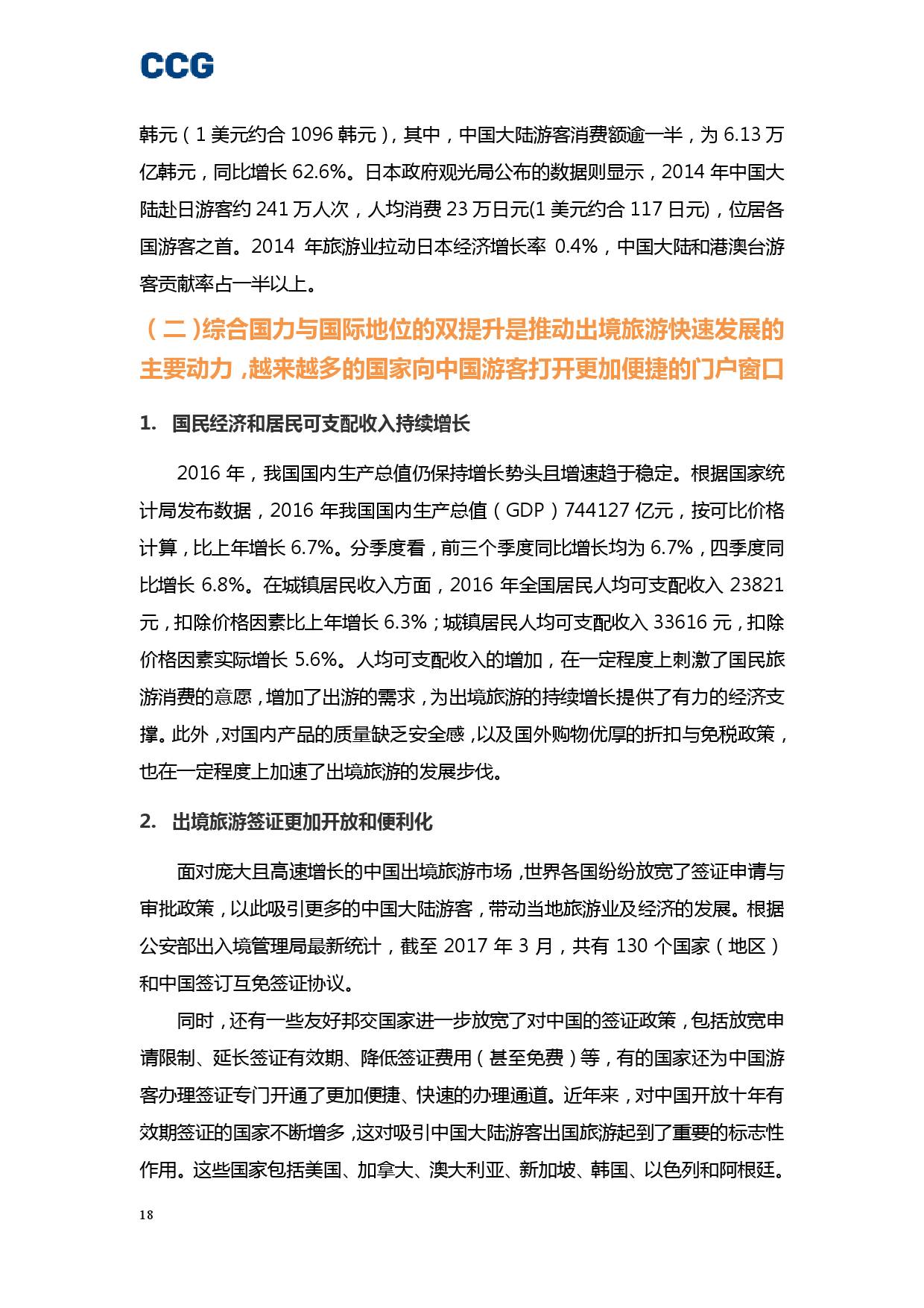 中国对世界旅游经济的拉动作用不仅体现在出游人数规模的扩大上,更体现在境外旅游消费的快速增长上。2016年,中国大陆游客境外消费总额达到2610亿美元,同比增长12%,占全球旅游总消费额的20.9%,排名世界第一,是美国游客境外消费总额的两倍多。2015年中国大陆地区游客境外人均消费达893美元(折合人民币约为6000元)。根据商务部统计,在海外人均消费构成中,约有一半来源于购物。庞大的中国游客在推动世界旅游业增长的同时,也成为拉动旅游目的国经济的重要力量。其中,日本、韩国和泰国等地受益最大。