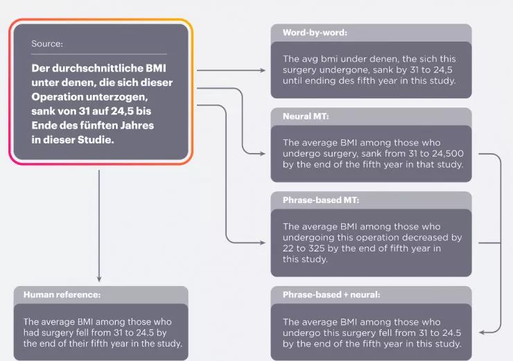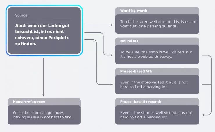 下面的德语——英语翻译示例显示了每种方法的结果: