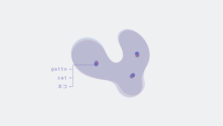 迈向我们伟大的目标的第一步是让系统学习双语词典,将一个词与其他语言中的合理翻译联系起来。为此,我们使用了我们在之前的论文中介绍到的方法(https://arxiv.org/abs/1710.04087),其中系统首先为每种语言中的每个单词训练词嵌入(单词的矢量表示)。