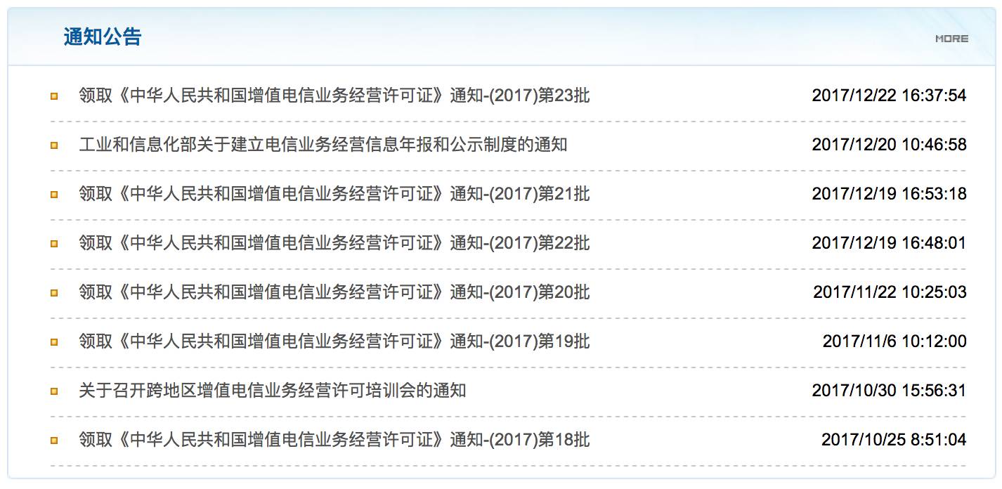 工信部年初发文:在《工业和信息化部关于清理规范互联网网络接入服务市场的通知》中提到:在《电信业务分类目录(2015年版)》实施前已持有IDC许可证的企业,若实际已开展互联网资源协作服务业务或CDN业务,应在2017年3月31日之前,向原发证机关书面承诺在2017年年底前达到相关经营许可要求,并取得相应业务的电信经营许可证。