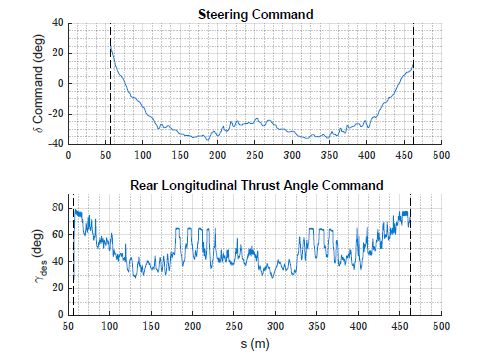 最后值得注意的是,因为在较大的状态范围内进行非线性模型反演,会产生较大范围的输入-最明显的例子是控制算法在图 6 测试时达到了 65°。