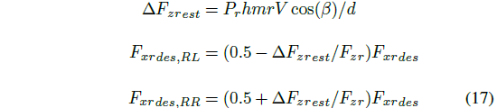 ,其中 d 为车辆轮距,单轮的期望纵向力基于稳态载荷转移的假设得到: