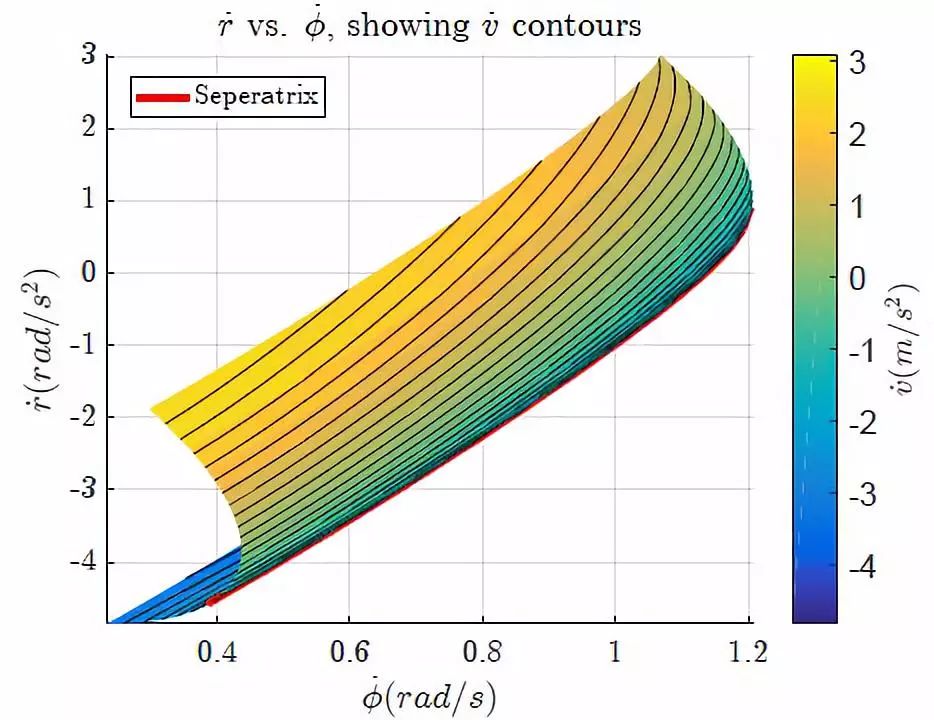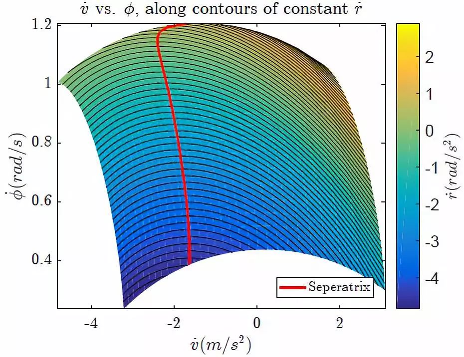 图 6 沿车速微分等高线的横摆角加速度vs航向角速度