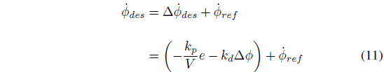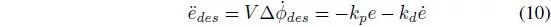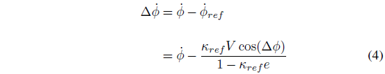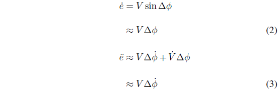 航向角速度 直接用于跟踪路径。侧向位移误差 e 的期望二阶动力学方程为: