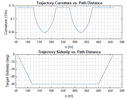 早期文献中,Velenis[9] 和 Hindiyeh 等人 [4] 分别通过仿真和实验,研究了车辆状态在漂移平衡点下的镇定。因为在标准输入下(转角和驱动力矩)系统是欠驱动的,所以同时跟踪路径和镇定质心侧偏角并不简单。最近的一些研究已经在简单的定圆试验中证明了这一点。Werling 等人 [11] 提出的控制器同时考虑了质心侧偏角镇定和路径跟踪,而 Goh 等人 [3] 的策略则是明确的跟踪路径。但是由于在车辆建模和控制器设计时的进行了严格假设,这些方法不能轻易地扩展到更复杂的轨迹。
