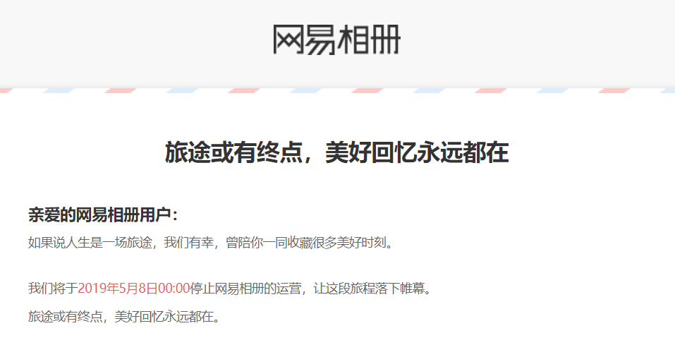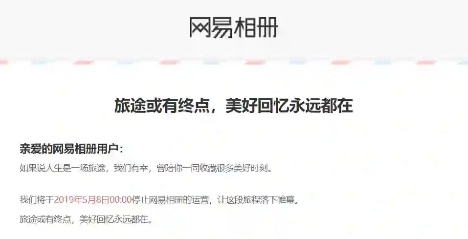 8. 网易相册将于5月8日0点停止运营