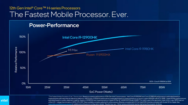 英特尔:酷睿 i9-12900HK 性能碾压 M1 Max