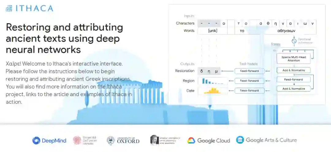 他们提出了首个可以恢复受损铭文缺失文本、识别原始位置并帮助确定创建日期的深度神经网络 —— Ithaca,它是以荷马史诗《奥德赛》中的希腊伊萨卡岛命名,在之前的 Pythia 工具上构建并进行了扩展。