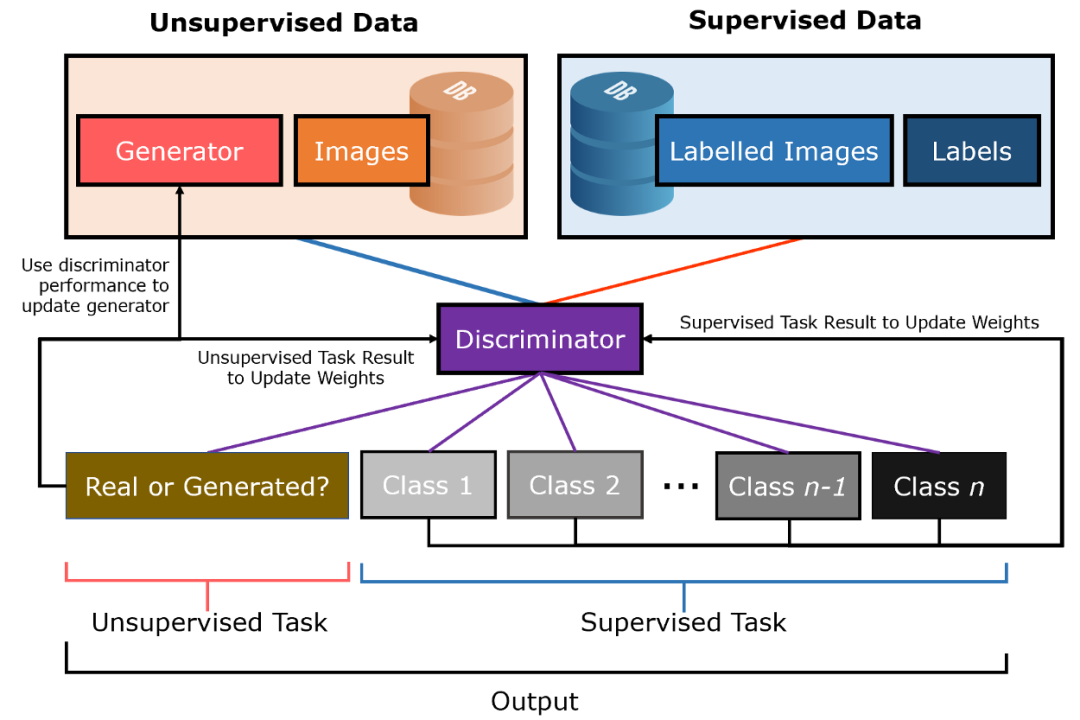 然而,在SGAN中,判别器同时接受两种模式的训练:无监督和监督。