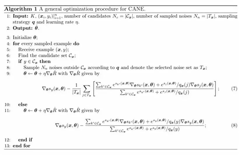 研究者通过两个具体算法展现了 CANE 方法的优越性。其一是用于 CANE 的一般随机优化过程(算法 1):