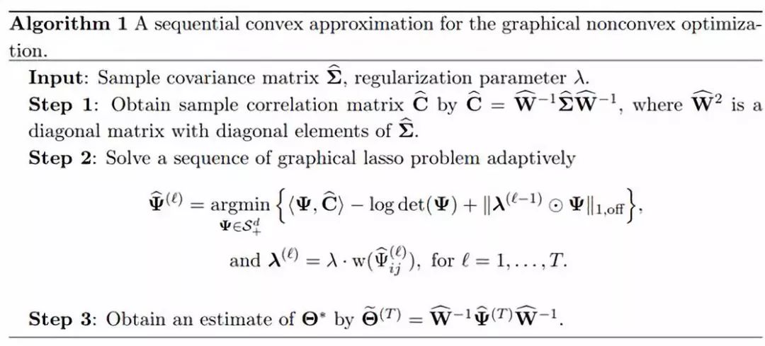 算法 1 可使用 glasso 等现有的 R 语言软件包实现。