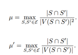 更重要的是,研究者定义了名为弱边密度 µ 和强边密度 µ' 的结构量。根据定义,边集的弱边密度表征了可从一个无效(null)变到另一个图的关键边的密集程度。这能反应这两个图的差异水平。强边密度是另一个表征这两个图的差异水平的量,且总是不小于弱边密度。下面给出了 µ 和 µ' 的定义: