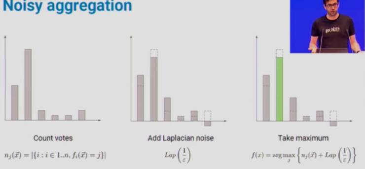 如果大部分「教师模型」都同意某一个预测结果,那么就意味着它不依赖于具体的分散数据集,所以隐私成本很小。但是,如果有两类预测结果有相近的票数,那么这种不一致,或许会泄露隐私信息。
