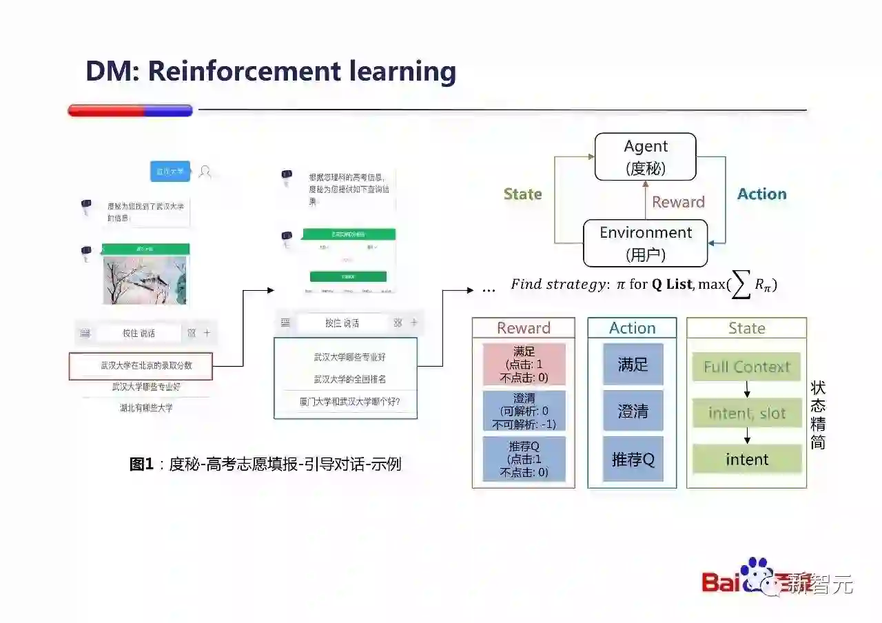在这里我们会把这个Dialogue management的问题构建成一个MDP问题(由于在实际产品中,我们并不知道考生最终填报了哪个志愿,所以我们把Reward设计成每次交互都会给出显示的奖惩),放在经典的Reinforcement learning的框架中来求解。上线之后,用户的交互体验大幅提升。