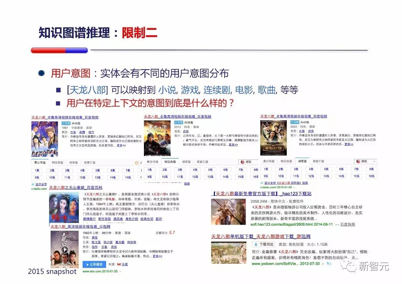总结一下第二部分,要给用户更多的直接答案,我们要充分利用知识图谱以及要和网页搜索来结合。(出于保密考虑,所有列出的数据都是百度2015年初的情况。)