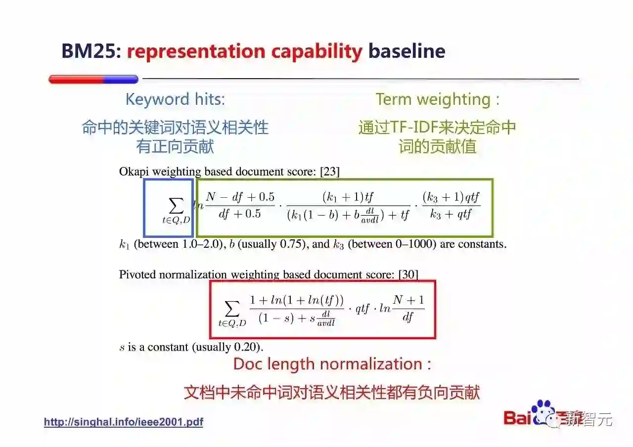我们通过经典的BM25匹配算法(信息检索的一个经典算法)来分析一下语义表达能力的基本组成部分。