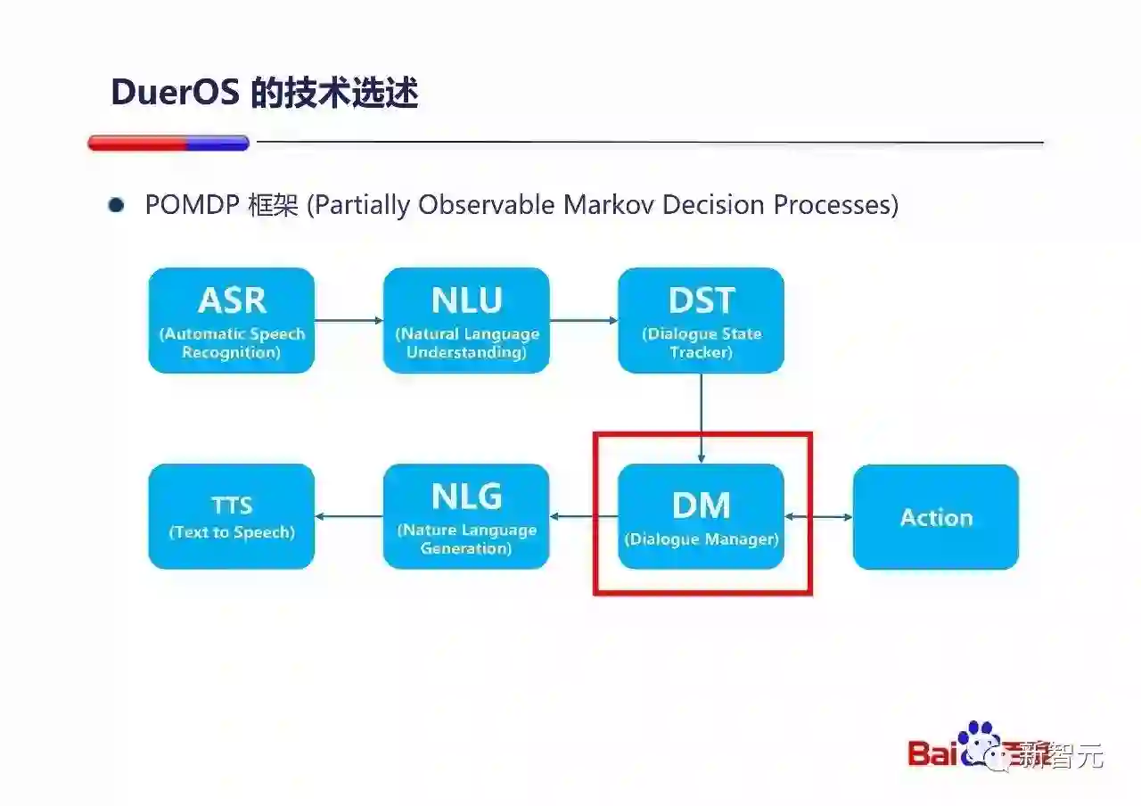从整个对话系统来说,DuerOS的整体是符合POMDP的框架的。采用POMDP的框架有很大的好处: