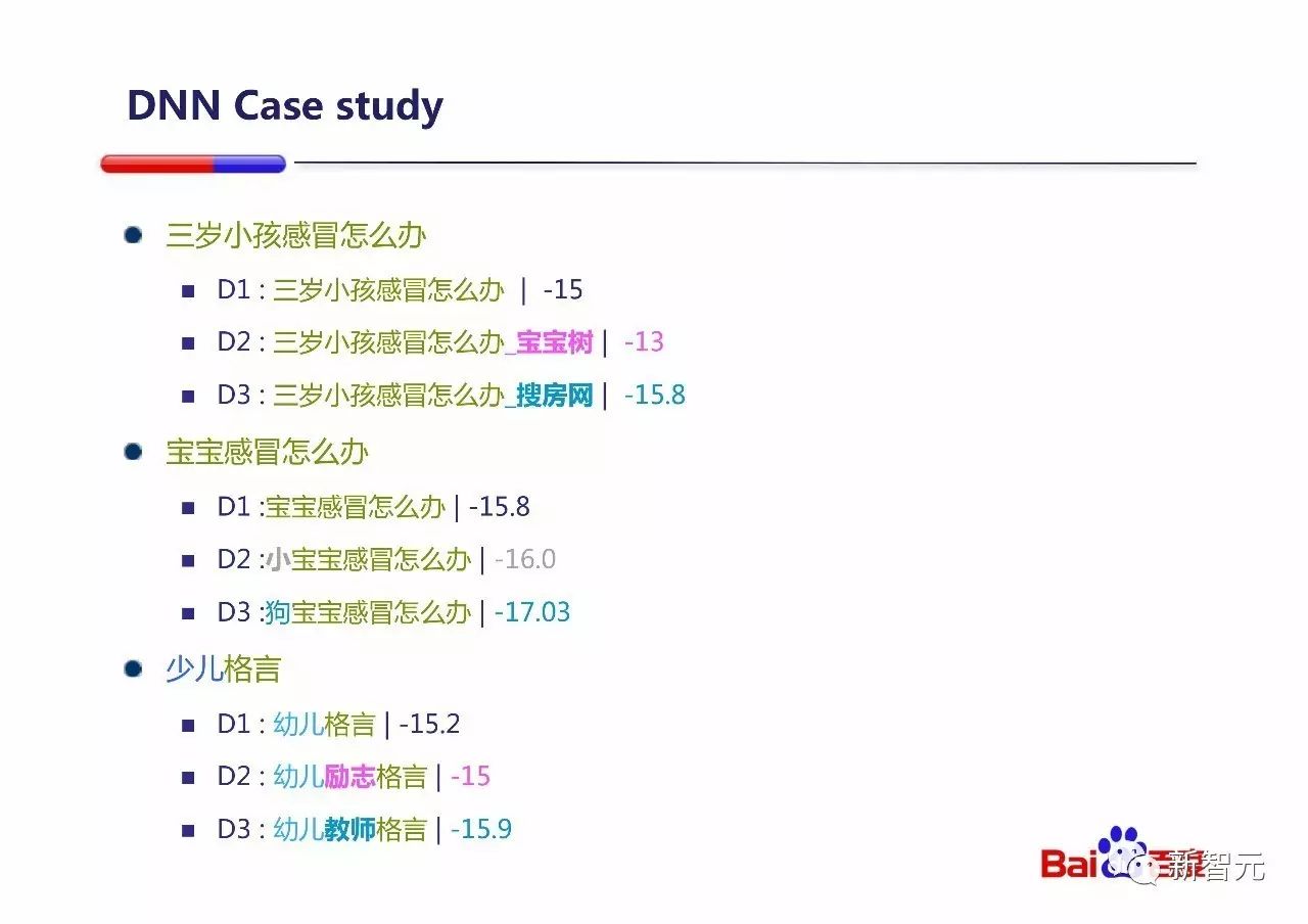 但当百度上线了DNN模型之后,大家可以看一下,搜索结果立刻明显改善了。排上来的结果虽然字面不是精确重现Query的问法,但是语义角度都是能够回答这个Query的。