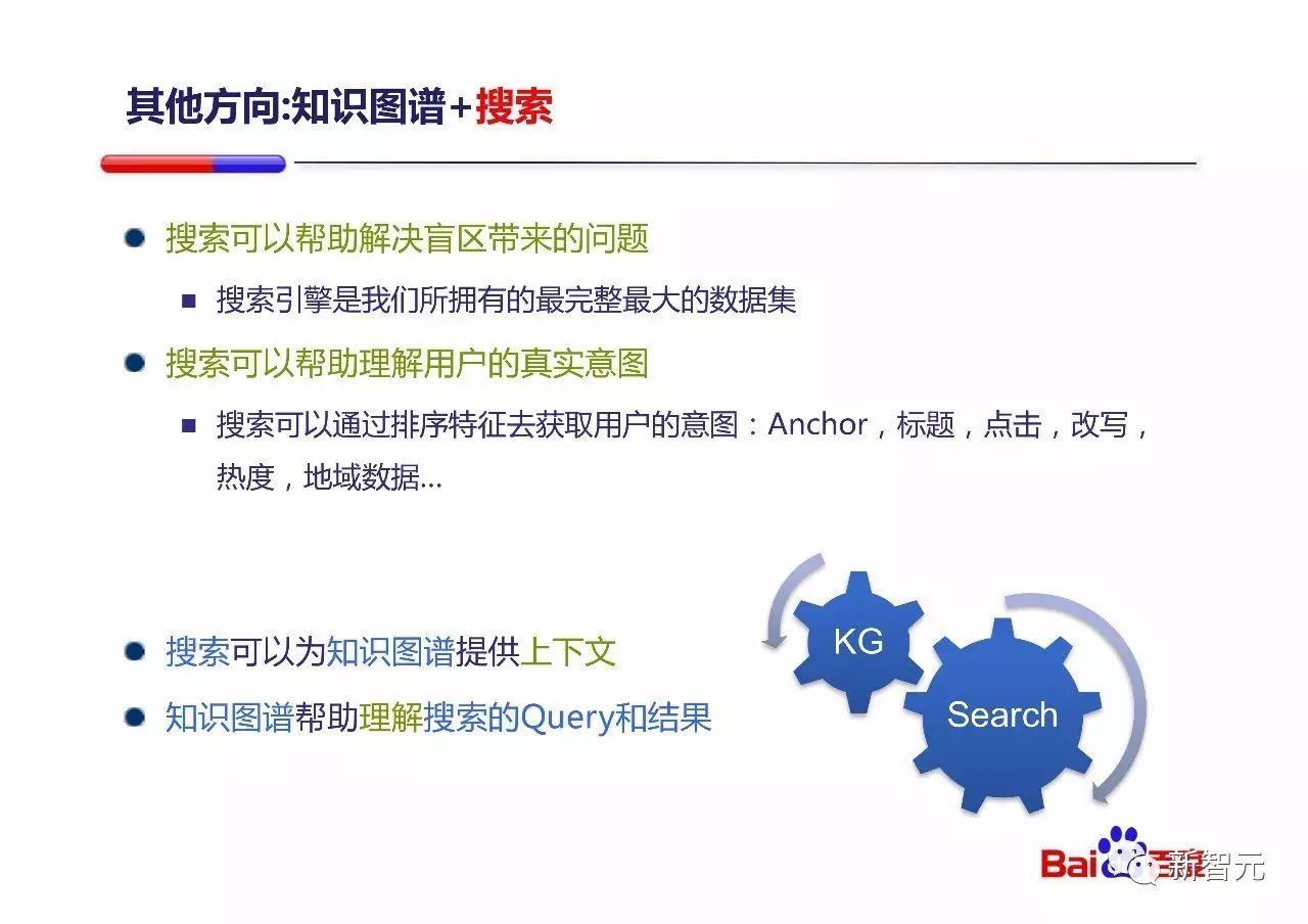 其他方向是『和搜索结合』。搜索能够帮助知识图谱解决盲区和意图分布的问题: