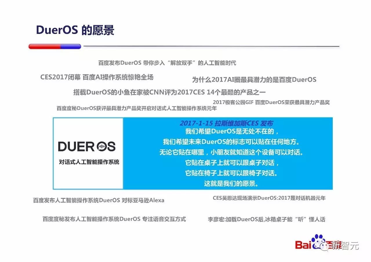 我们对DuerOS的愿景是这样的:『我们希望DuerOS是无处不在的,我们希望未来DuerOS的标志可以贴在任何地方。无论它贴在哪里,小朋友就知道这个设备可以对话。它贴在桌子上就可以跟桌子对话,它贴在椅子上就可以跟椅子对话。』