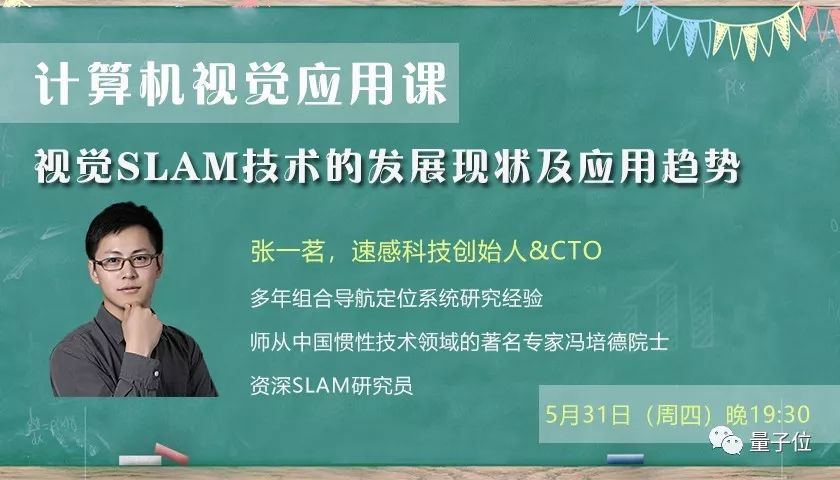 5月31日(周四)晚19:30,量子位·吃瓜社邀请到速感科技CTO张一茗,带来一节视觉SLAM方向的计算机视觉应用课。他将从机器人市场目前状况、以及SLAM技术的崛起与发展讲起,对三维深度传感器不同技术路线进行比较,跟大家一起讨论vSLAM如何实现及其应用问题。