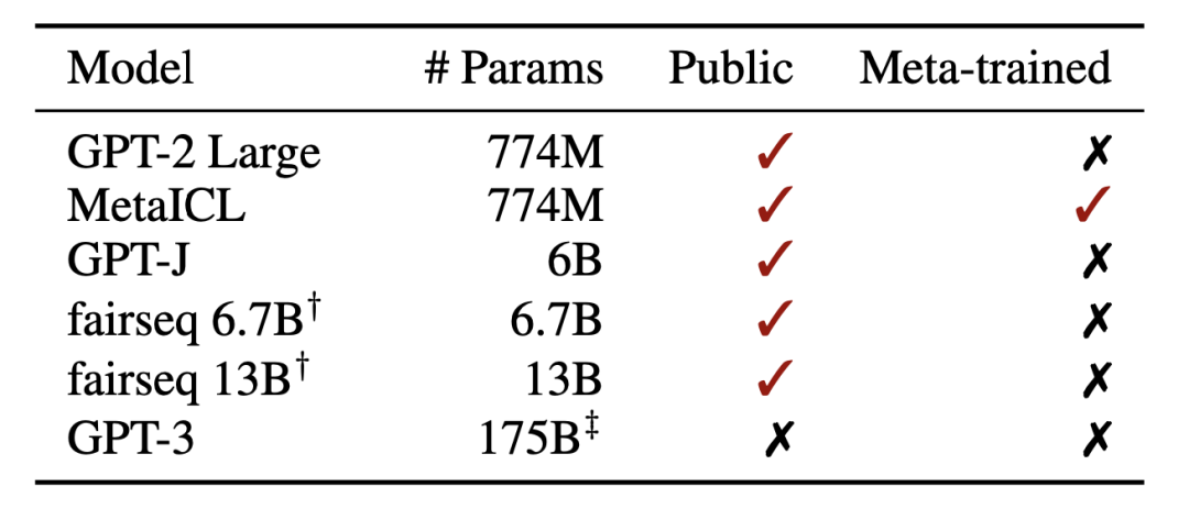 本文主要探究了6种不同的预训练模型,其中,MetaICL采用了大量的下游任务以in-context learning的形式进行了元学习:
