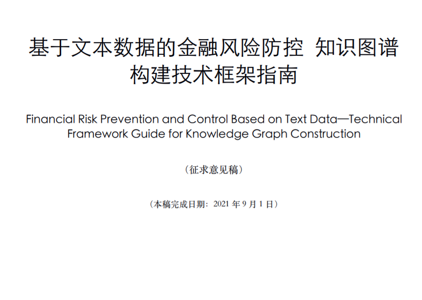 《基于文本数据的金融风险 防控 知识图谱构建技术框架指南》国家标准,本标准规定了在金融风险防控领域知识图谱的构建方法和技术实现步骤,明确列举了基 于知识图谱可构建的金融风险防控典型应用场景。