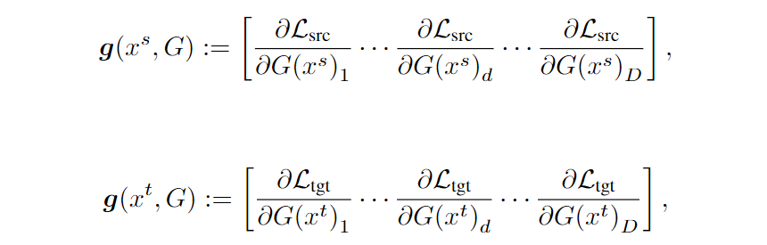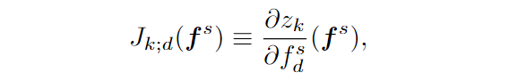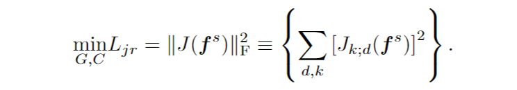 本文也采取了梯度正则化的手段来提升模型的分类能力,具体而言,本文在特征层面采用雅可比矩阵正则化,使得特征提取器可以学习到更多远离决策边界的具有鉴别性的特征,同时分类器可以扩大分类 margin。其中输入输出的雅可比矩阵定义为: