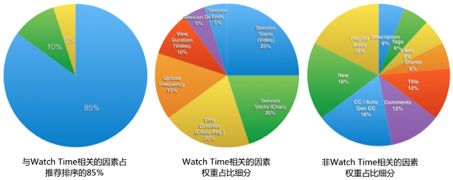 YouTube推荐以播放时长(Watch Time)为优化目标。Matt Gielen 在2016年有篇博客用逆向工程的方法分析了YouTube推荐排序的因素,结论是与Watch Time直接相关的因素重要性占85%以上(http://www.tubefilter.com/2016/06/23/reverse-engineering-youtube-algorithm/)。