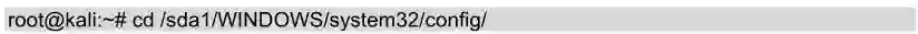 (3)切换目录,进入到Windows SAM文件的位置。执行命令如下所示: