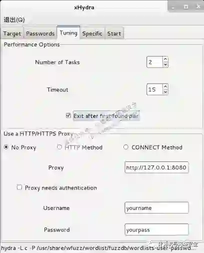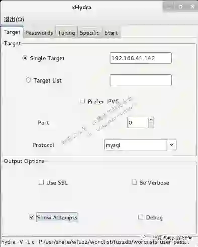 使用Hydra工具破解在线密码,具体操作步骤如下所示。