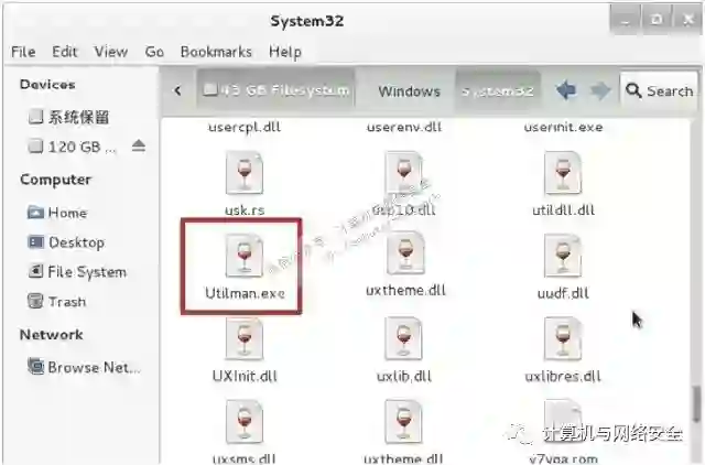 (5)在该文件夹中找到 Utilman.exe 文件,将该文件重命名为 Utilman.old。然后复制cmd.exe文件,并将其文件名修改为Utilman.exe。